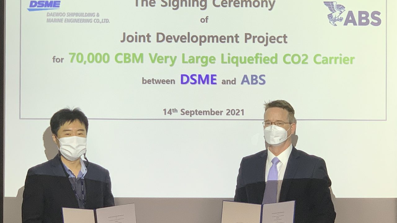 ABS and Daewoo Shipbuilding & Marine Engineering Co. Ltd. (DSME) are to jointly develop designs for a 70,000 CBM very large, liquefied CO2 (LCO2) carrier.