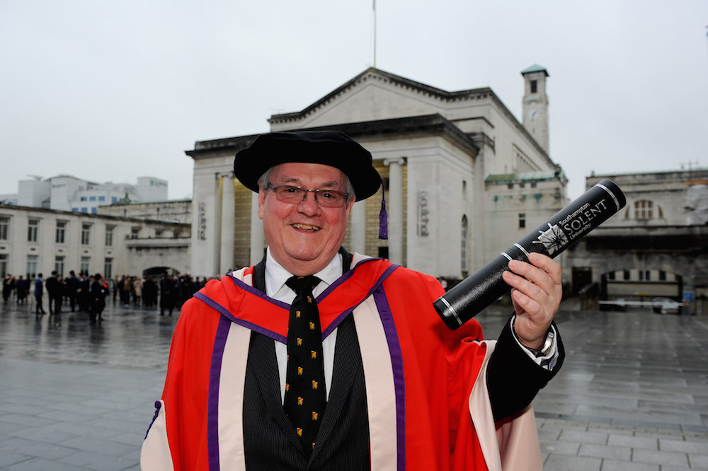 Former Warsash Maritime Academy cadet and now Chief Executive of Maritime London, Doug Barrow, was awarded the honorary degree of Doctor of Maritime Studies by Southampton Solent University on Thursday 19 November.
