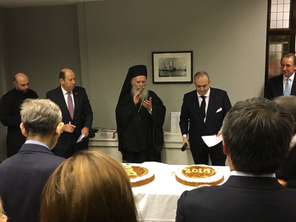 Maritime London member, the Greek Shipping Cooperation Committee cut the Vasilopita cake at a traditional Greek ceremony to welcome the new year, held earlier this month at the Baltic Exchange in London. The Vasilopita cake was cut by chairman Haralambos Fafalios and blessed by Archbishop Gregorios, at the event that was well attended by the London Greek shipping community.