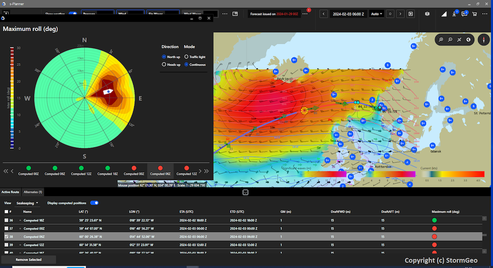 Photo: Sample of s-Planner, StormGeo’s onboard voyage planning solution, featuring the new ABS notation CLP-V(PARR) – Courtesy StormGeo