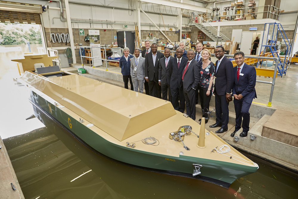 Representatives from Nigeria LNG Ltd and University staff recently commissioned the latest vessel to join the scale ship model fleet at Southampton Solent’s Ship Handling Centre at Timsbury Lake, near Romsey.